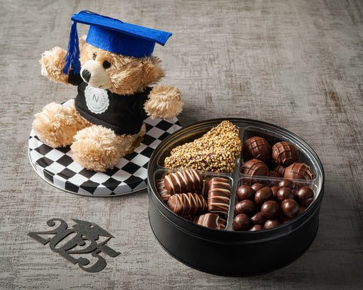 Mark the milestone with The Nuttery’s Bear & Chocolate Graduation Gift. The 4-section tin box is filled with a delightful assortment of premium...