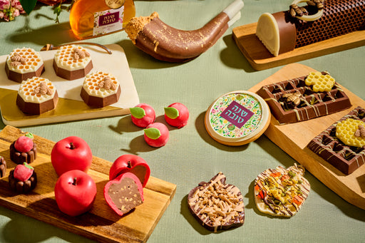 Add a touch of elegance and indulgence to your Rosh Hashanah festivities with our Chocolate-Shaped Apple Bark Gift Box that is a delightful and sop...