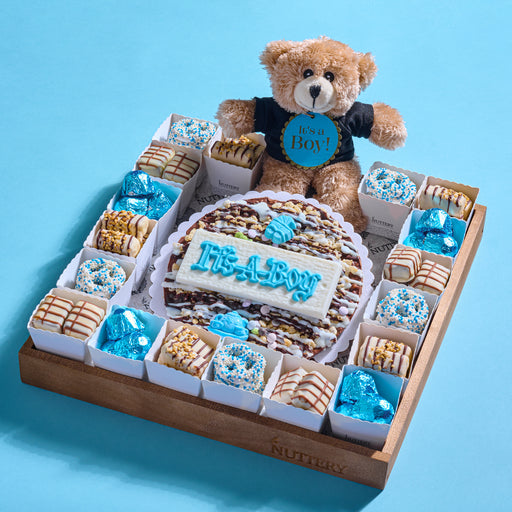 Celebrate the arrival of a baby boy with The Nuttery’s Baby Boy Pie and Chocolates Gift Tray in Party Cups with Bear. This charming tray features a...