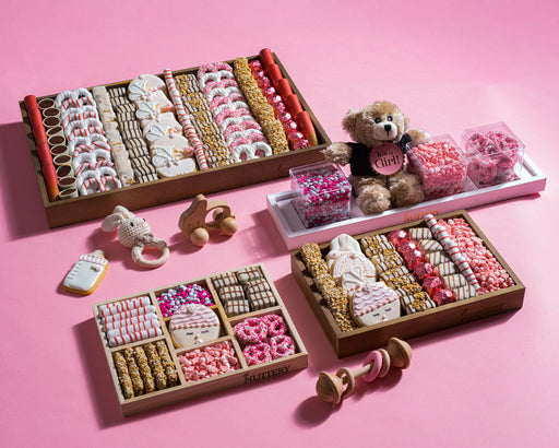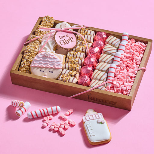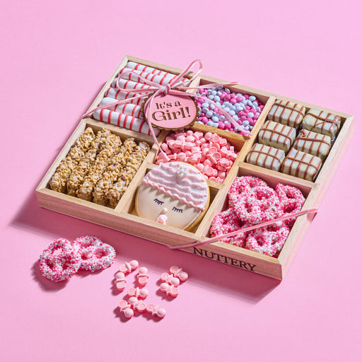 Celebrate the arrival of a baby girl with this delightful and elegant gift tray from The Nuttery. The handcrafted wooden tray is divided into seven...