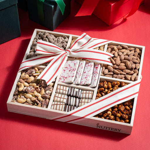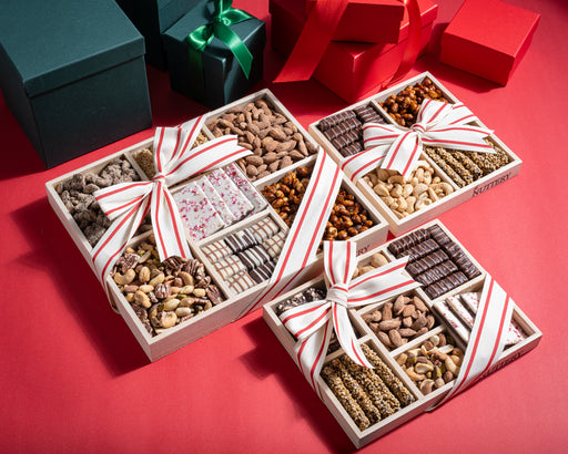 Celebrate the season with our Holiday Chocolate & Nut Gift Trays, available in three sizes. Each tray features premium chocolates and gourmet n...