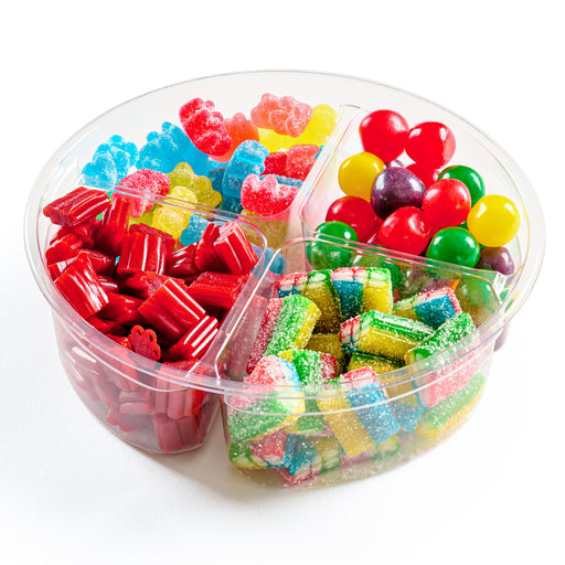 Indulge your sweet tooth with our delightful 4-Section Plastic Candy Tray—a perfect blend of charm and convenience! Each clear compartment is fille...
