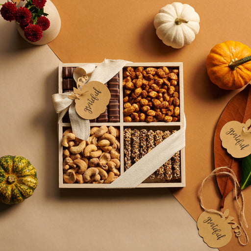 Celebrate the season of gratitude with our Thanksgiving Chocolate & Nut Gift Trays. Each tray features premium chocolates and gourmet nuts, tho...