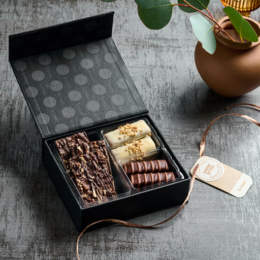 Make your corporate gifting truly memorable with our Dark Chocolate and Nut Gift Tin, a sophisticated choice that combines luxurious chocolates wi...