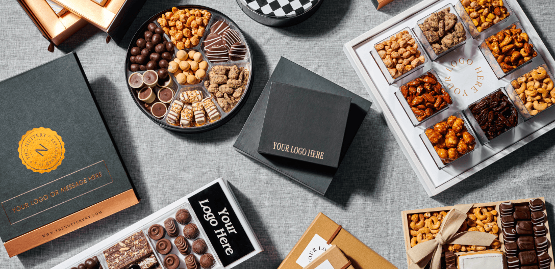 Want to really stand out? The Nuttery makes it easy with a variety of ways to personalize your holiday business gifts.